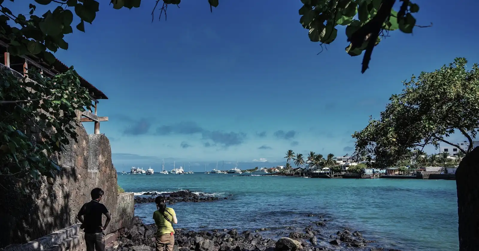 Por ejemplo, el Golden Bay Galapagos, con 19 habitaciones, se encuentra justo en el puerto de la Isla San Cristóbal. Puedes ver a los leones marinos jugueteando en una pequeña playa directamente frente a la propiedad, y los barcos de excursión de un día parten desde un muelle que está a no más de tres minutos a pie.